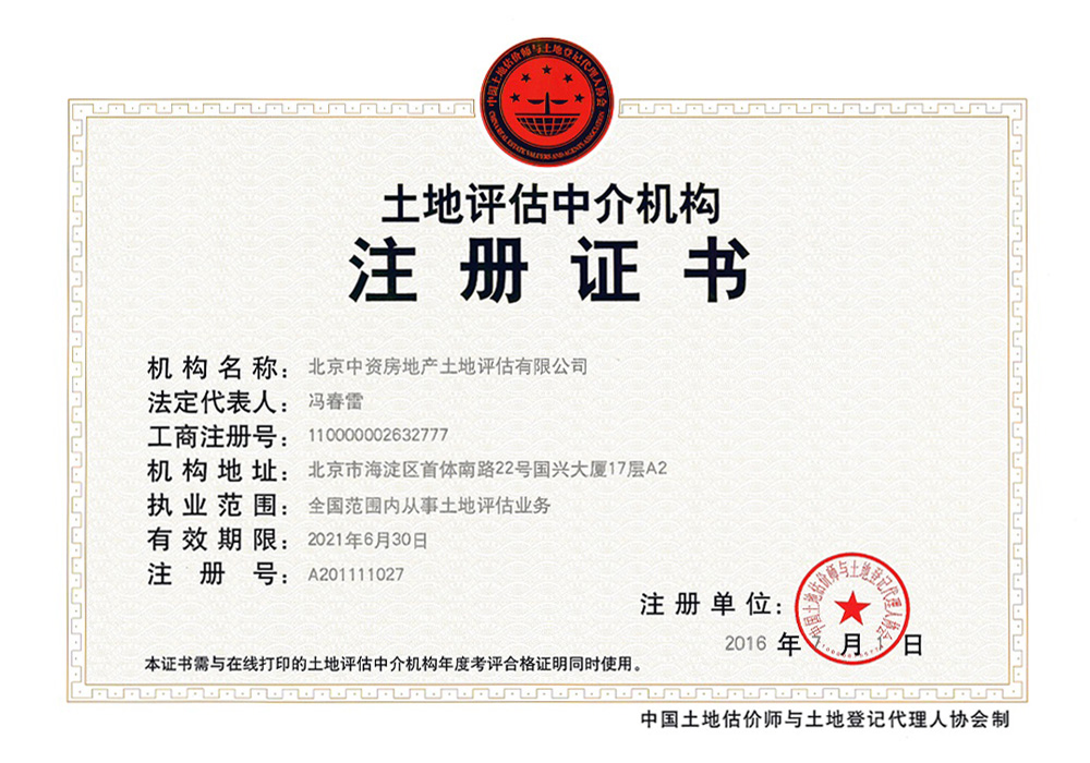 土地評(píng)估中介機(jī)構(gòu)注冊(cè)證書(shū)