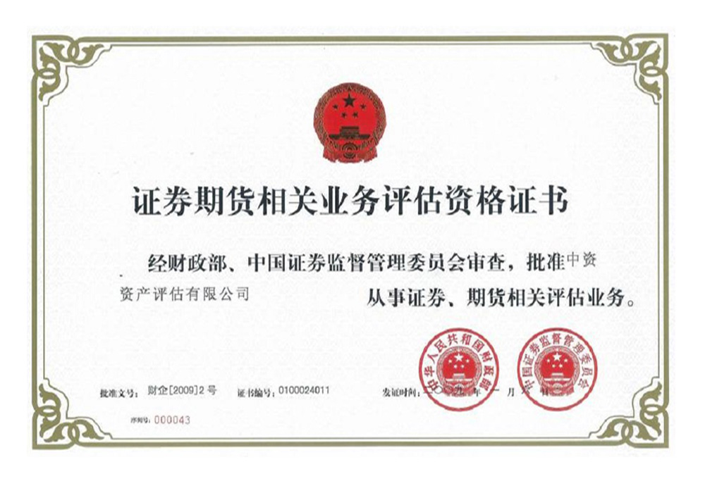 證券期貨相關(guān)業(yè)務(wù)評(píng)估資格證書(shū)